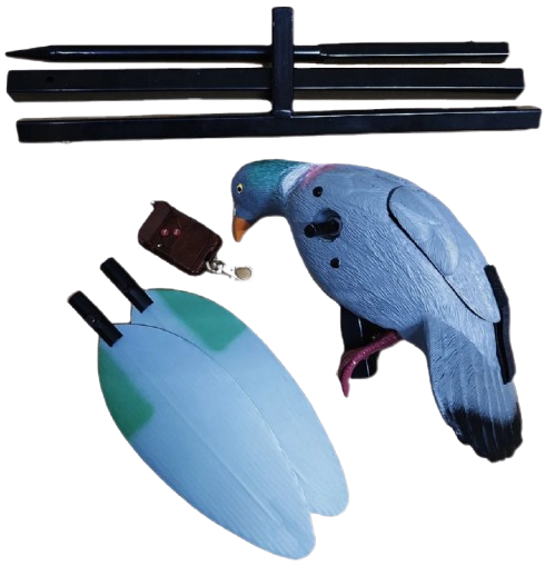 Il colombaccio ad ali rotanti è un’esca elettronica studiata per riprodurre in modo fedele il movimento naturale del colombaccio durante l’atterraggio, uno dei segnali visivi più attrattivi per i volatili in avvicinamento.